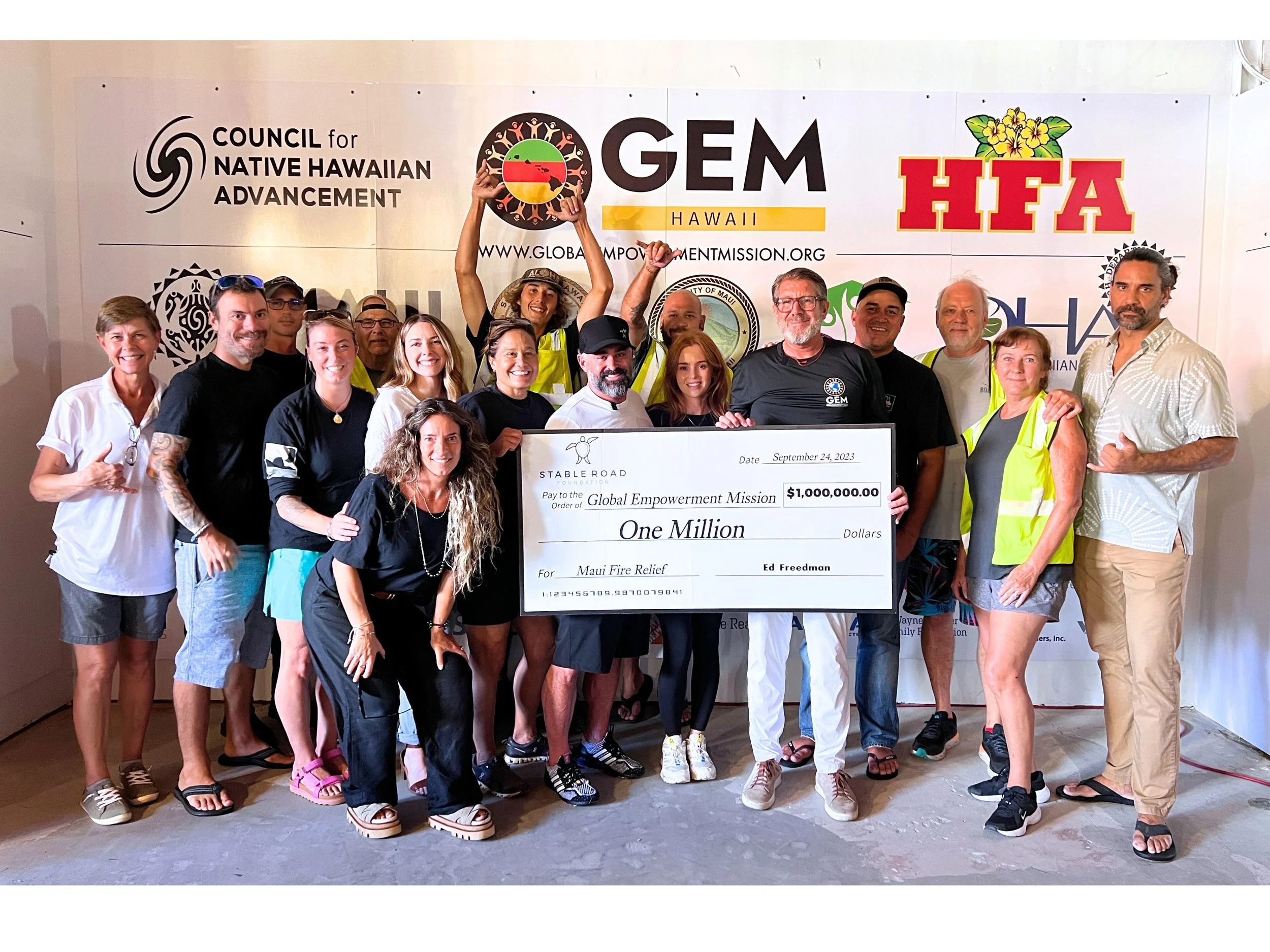 Ed Freedman’s Stable Road Foundation has announced a $1 million donation to Global Empowerment Mission (GEM), an award-winning nonprofit, to support rebuilding efforts on Maui following catastrophic summer wildfires.